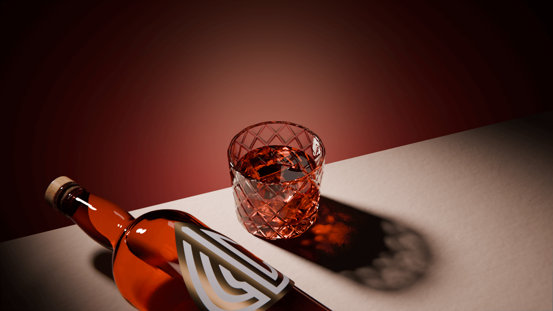 • A Negroni cocktail in a cut glass tumbler next to a bottle of Negroni.