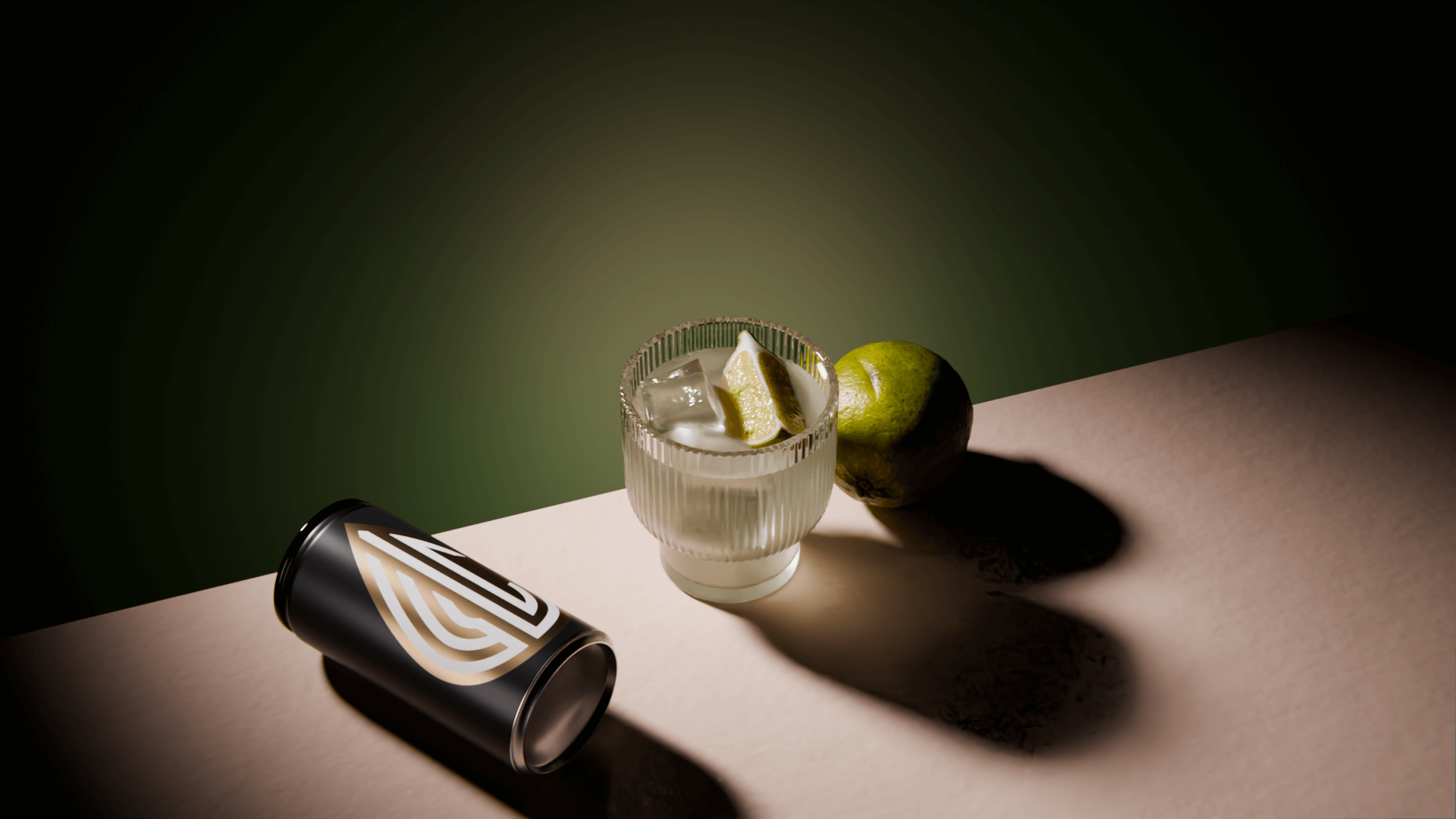 • A starkly lit Tommy's Margarita cocktail in a fluted glass next to a lime and a can bearing a logo for White Label Cocktails